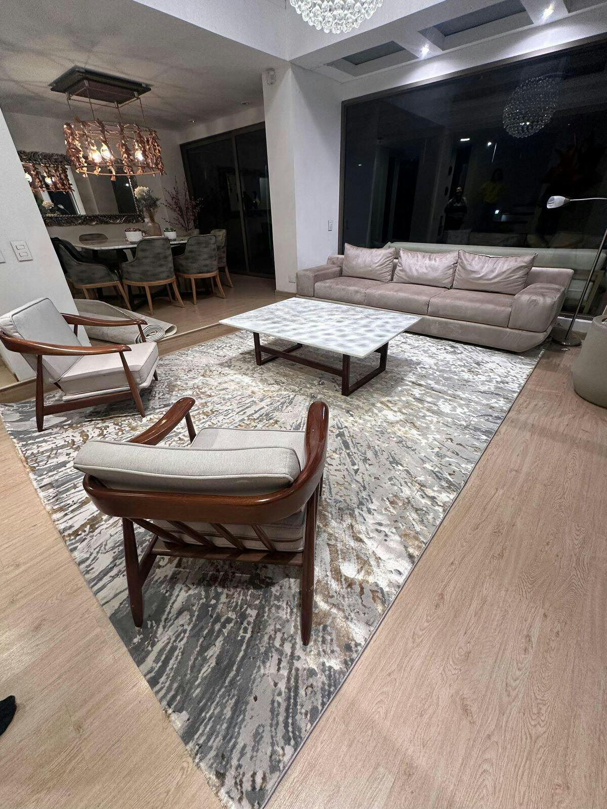 Motivos difusos en gris y dorado que evocan la niebla entre montes al amanecer dan vida a esta alfombra turca exclusiva, una pieza que combina naturalidad, elegancia y modernidad. Su diseño central, enriquecido con visos metalizados, es perfecto para dar sensación de amplitud y luminosidad, convirtiéndose en el complemento ideal para salas amplias, zonas sociales o estudios con estilo contemporáneo. Atemporal y refinada, esta alfombra transforma cualquier ambiente en un espacio lleno de carácter y sofisticación. Más que un simple accesorio, es una obra textil que une estética y funcionalidad, ofreciendo suavidad, resistencia y practicidad en partes iguales.