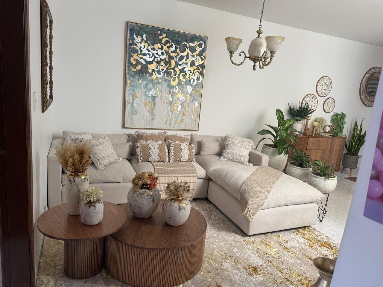 Diseño Abstracto en Beige y Dorado
